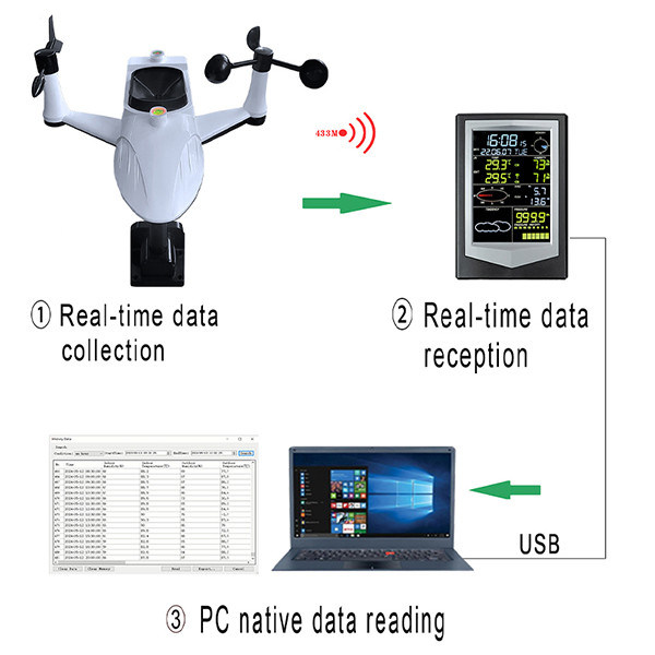3- la vitesse du vent: 0 à 50 m/s, résolution: 0,1 m/s, précision: 10%;